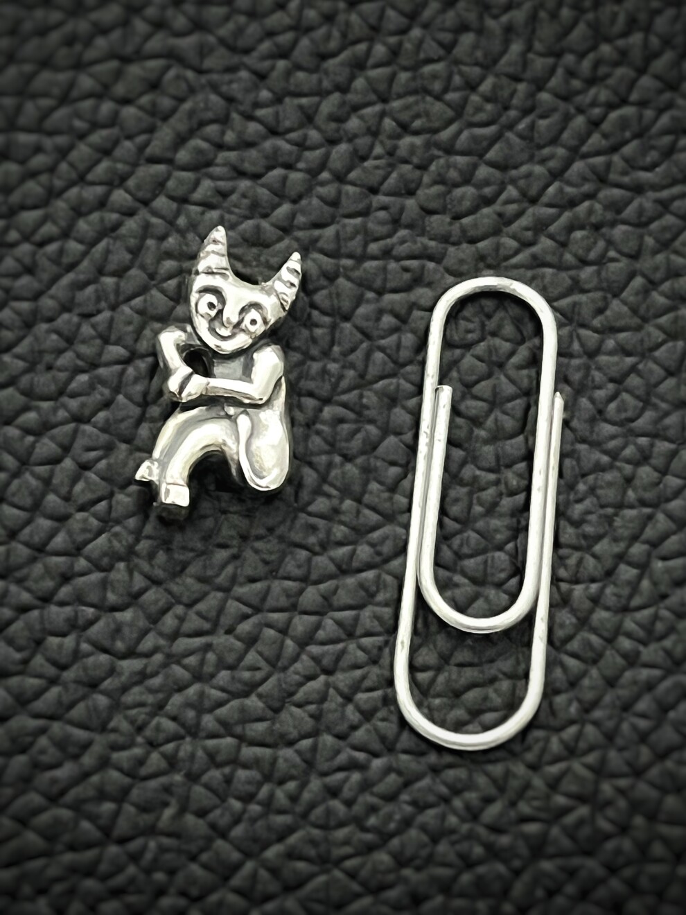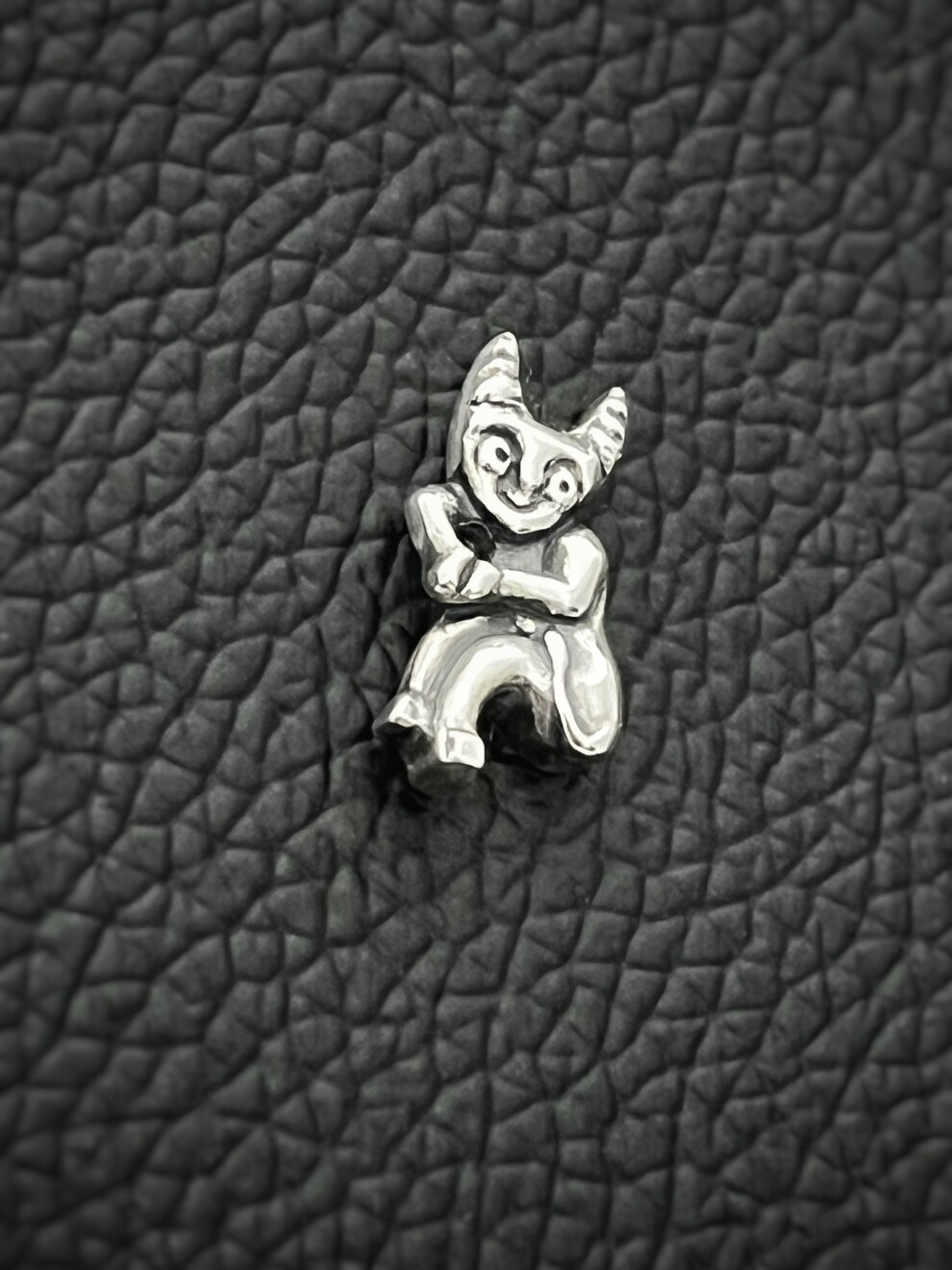 Фигурка выглядит выразительно и чуть насмешливо. Она добавляет образу тонкий акцент и работает как напоминание сохранять ясность.