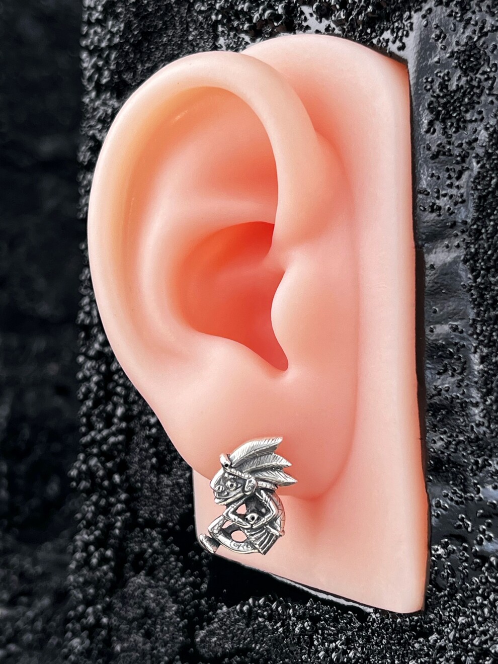 Серебряная моносерьга с оксидированием. Малый тираж. Английский замок.